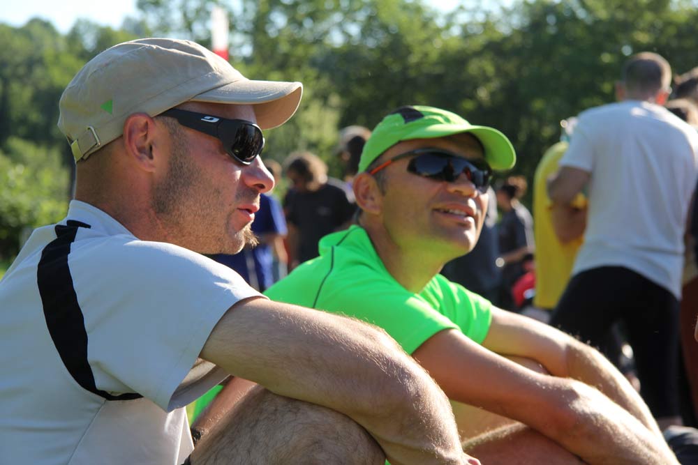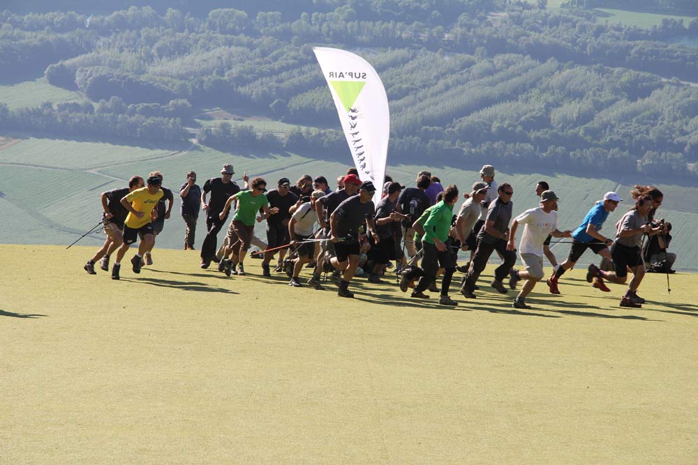 We had to run around the takeoff mat, not taking out the small children marking the turn, and grab our bags from our supporters