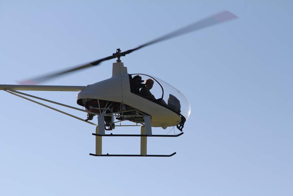 Helicopter filming and photographing the start