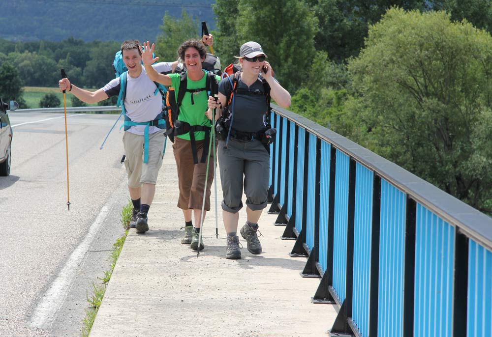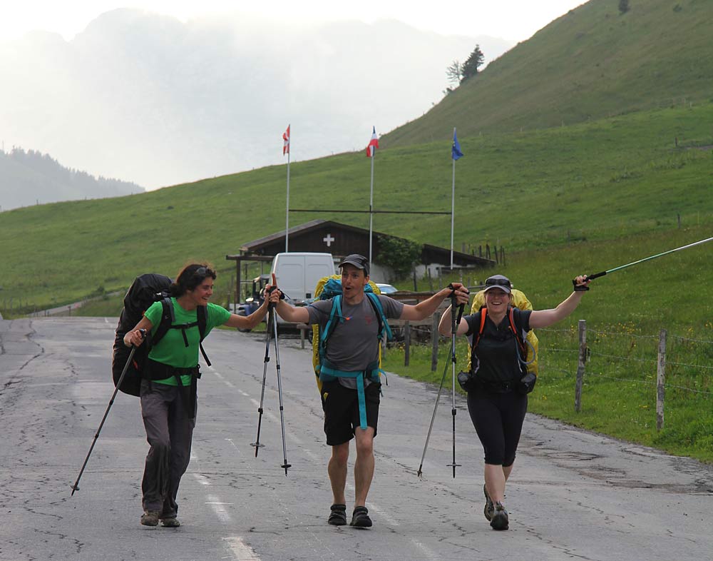 Arriving at the col. Me, Aude and Gabriel