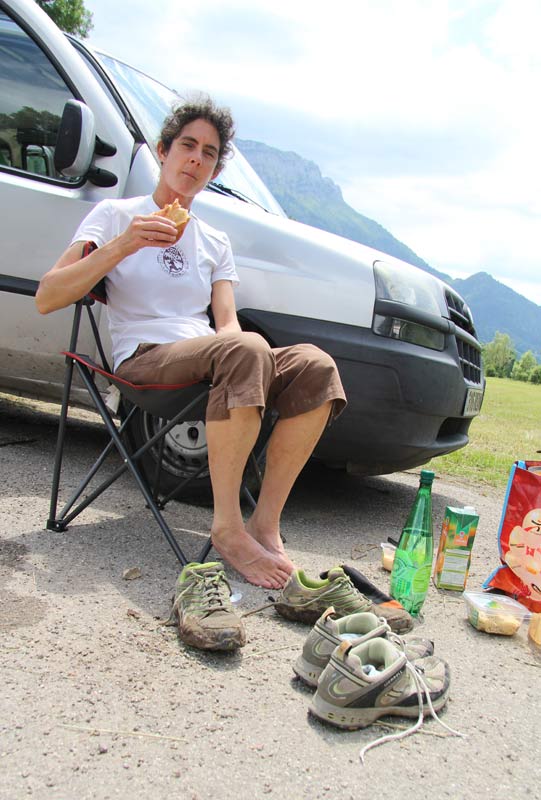 Lunch stop in Ecole … and a change of shoes was very welcome.
