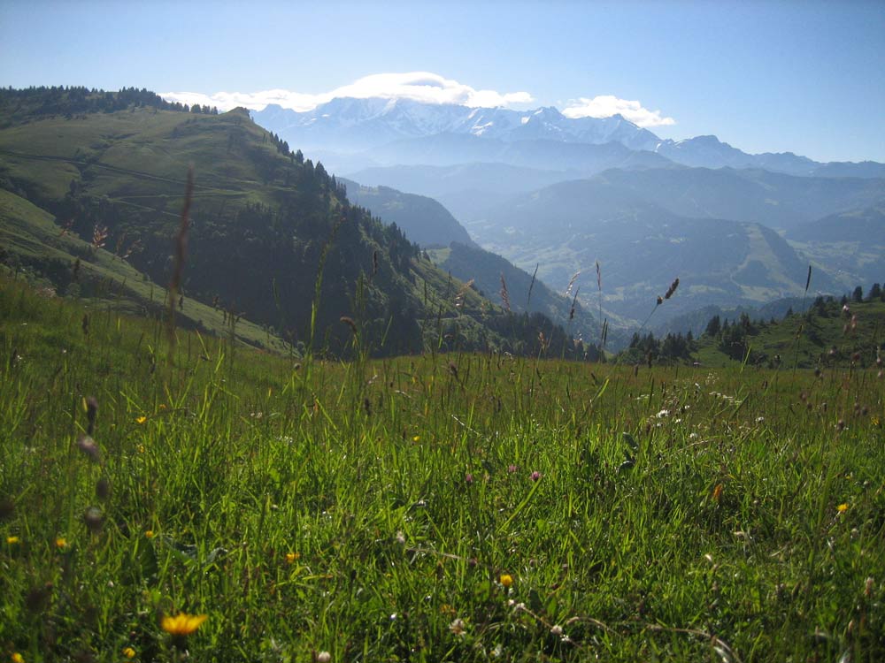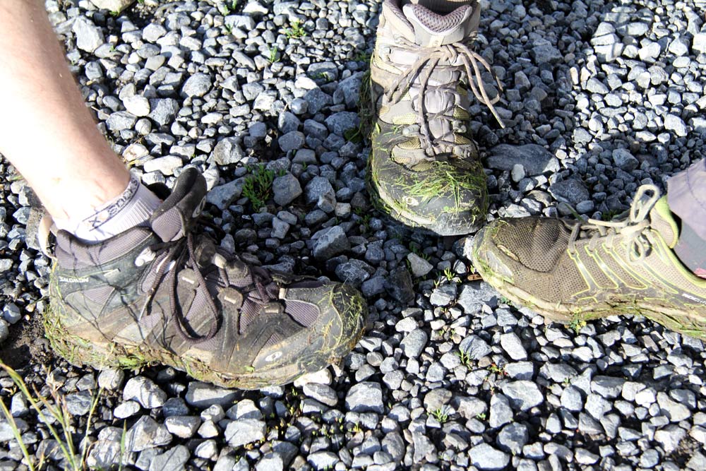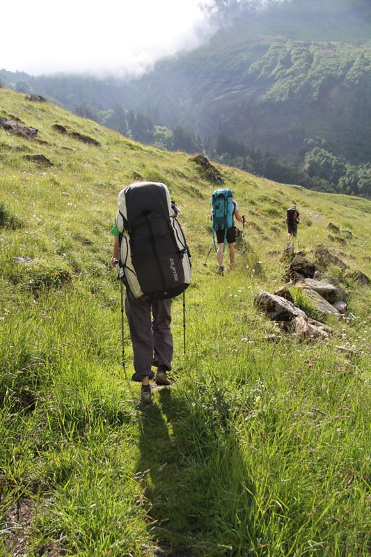 Grassy Alpine meadows early in the morning = wet, grassy feet all day!