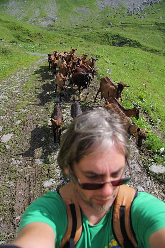 Marcus gains a herd of goats for a couple of kilometres, on the way down
