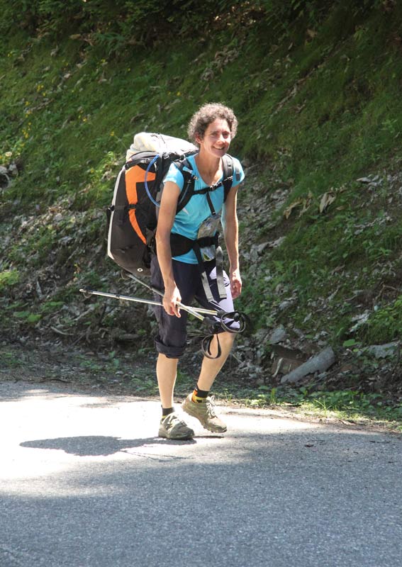 Aude and Gabriel on the way up to the col
