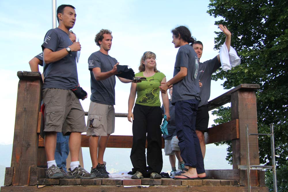 Full-on picnic table action from another support team in Ecole